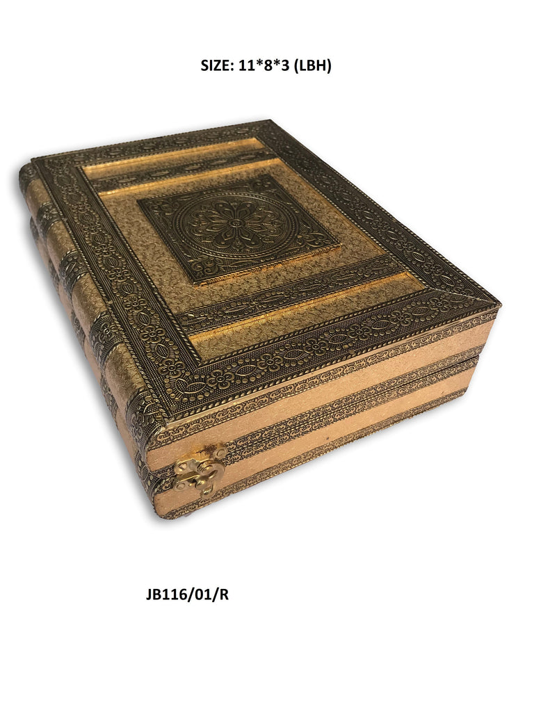 Oxidised Jewellery Box minakari Box. you can use it as a jewelry box. Jewellery boxes are beautiful receptacles for your jewels and trinkets. This jewellery box is made of wood covered with high quality metal foil having good quality velvet inside. It has 5 boxes for earrings n chains and 1 row for bangles. attractive & useful look for lock. Jewellery box helps you develop the habit of taking care of your jewellery properly. This GetSetly engraved box is in fact often collected as decorative box. Using a jewellery box helps - keep jewellery safe so it cannot be lost or inadvertently damaged, keep jewellery in one location so pieces of sets are not separated, keep jewellery clean by keeping it away from daily dust, dirt, and grime. It can be a precious gift item too. This oxidized finish box is ideal for gift at weddings.
