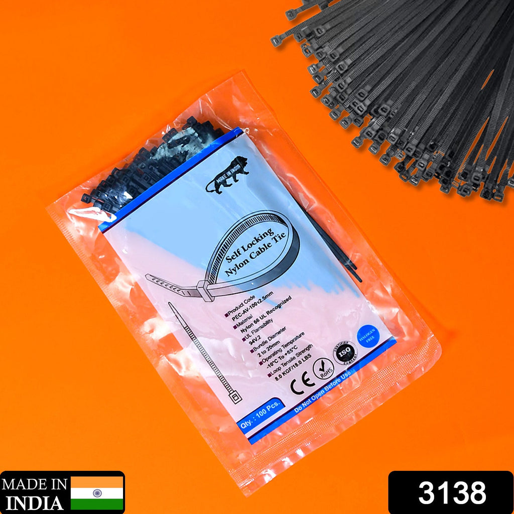 3×100 MM Nylon Self Locking Cable Ties, Heavy Duty Strong Zip Wire Tie. Pack of 100pc