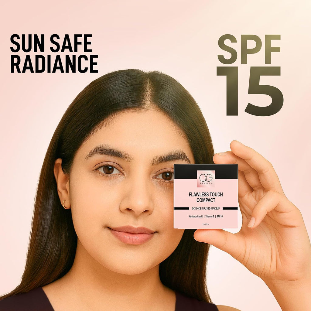 compact powder, matte finish compact, OG Beauty face powder, Brew shade compact, long lasting compact powder, vitamin E enriched makeup, flawless touch powder, oil control face powder, lightweight compact powder, smooth finish makeup, daily wear face powder, natural matte finish, buildable coverage powder